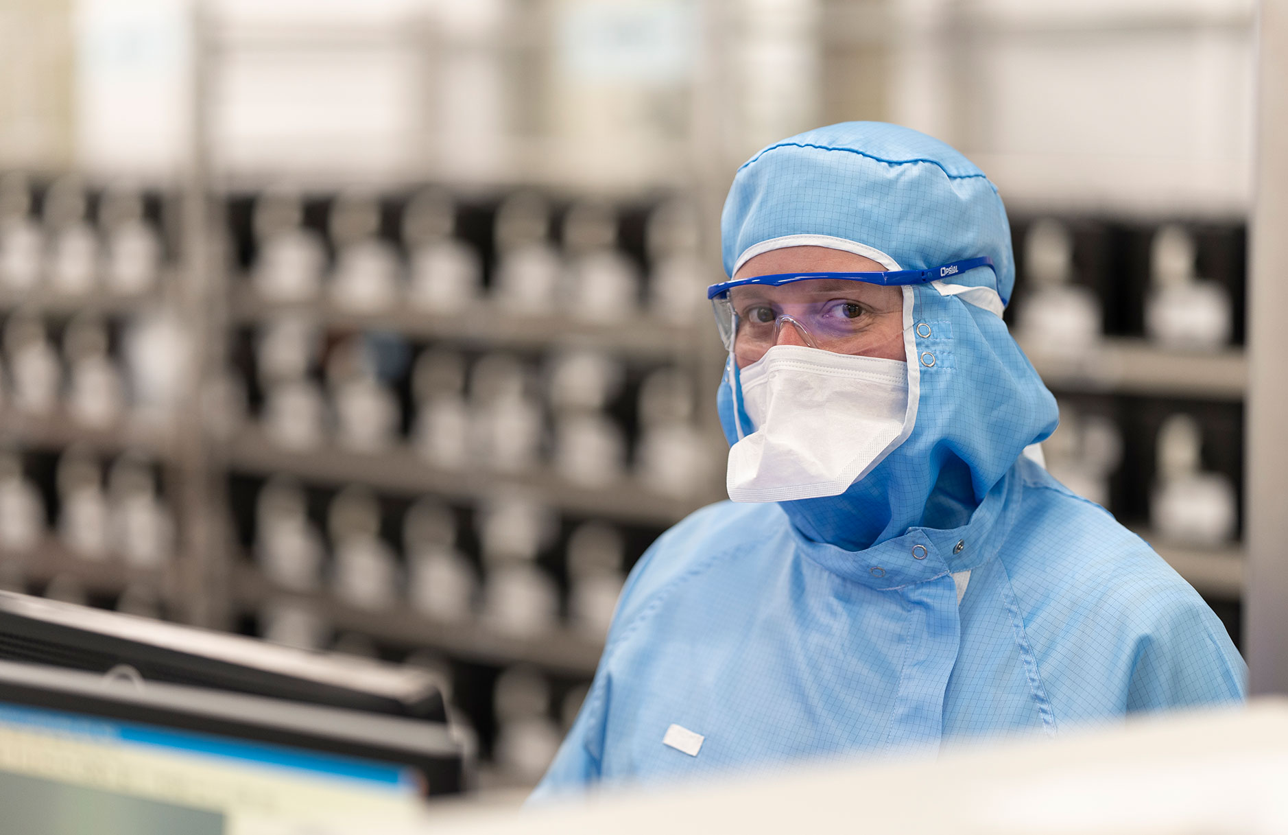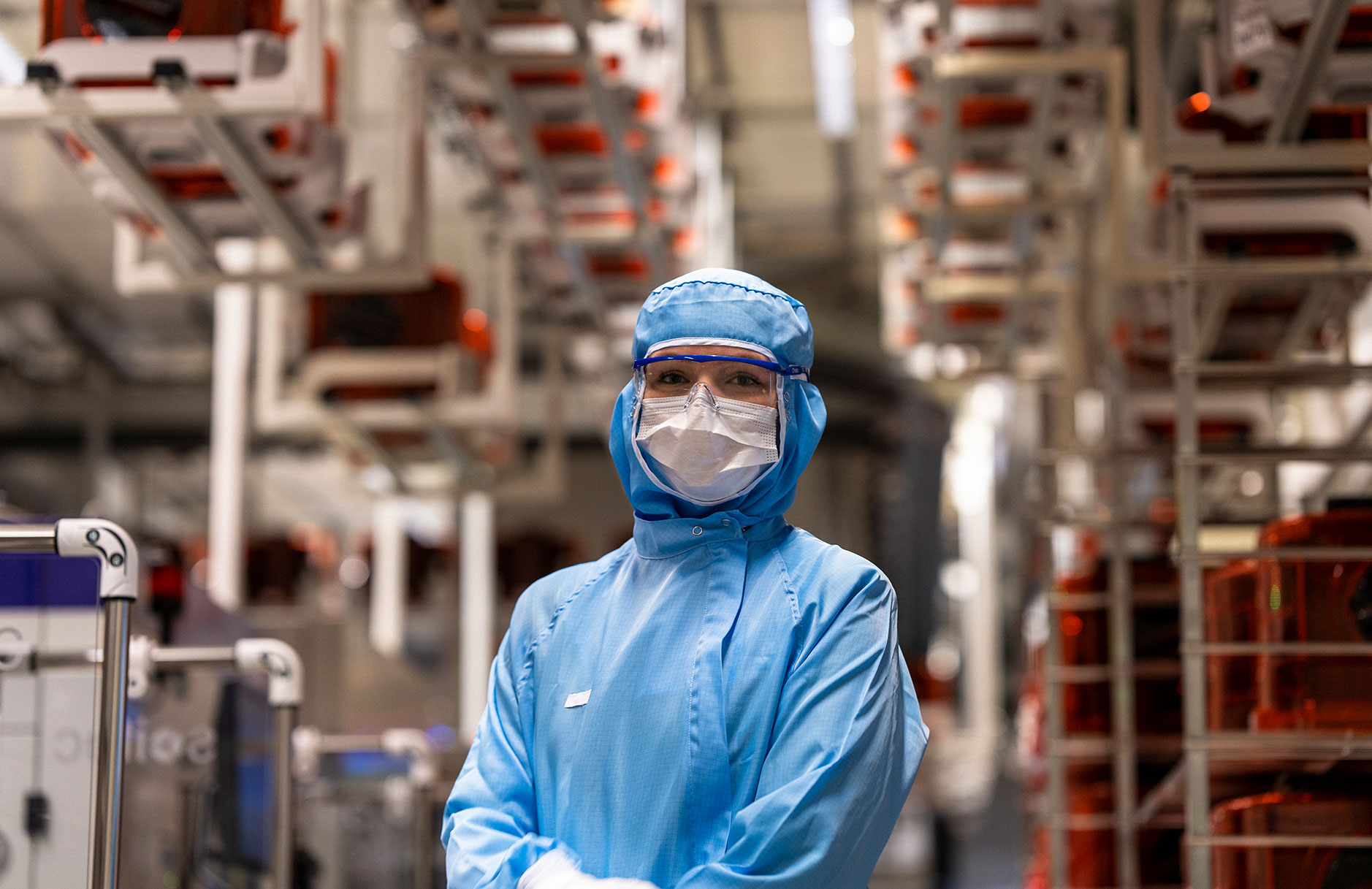 I had the opportunity to take photographs in a clean room, an environment where photography is complex because of its extreme cleanliness. It is essential not to capture images of sensitive machines and processes, and flexibility is limited in this environment.